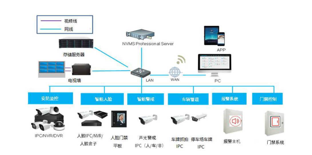 NVMS 专业版是同为公司推出的新一代综合安防管理平台,可无缝接入同为公司全系列产品和主流厂家编码设备,具备强大的视频监控管理能力,支持实时预览、录像存储、录像回放、录像下载、报警联动、解码上墙、键盘控制、车辆出入口管理、智能应用等功能;开放的体系架构,提供 SDK/OCX 供第三方二次开发,支持第三方如报警系统、门禁系统、可视对讲等安防子系统的接入,满足客户对多安防子系统集中管理、多业务融合的需求,可广泛应用在园区、教育、金融、连锁、楼宇等行业的大中型视频监控系统。